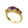 Ametist, dumanlı kuvars ve rodolit garnet 14 ayar altın yüzük