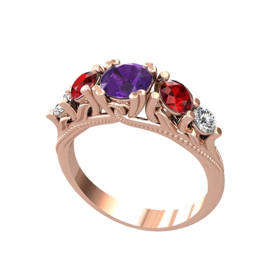 Ametist, garnet ve beyaz zirkon 14 ayar rose altın yüzük