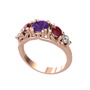 Ametist, kök yakut ve swarovski 18 ayar rose altın yüzük