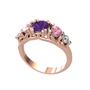 Ametist, pembe kuvars ve pırlanta 18 ayar rose altın yüzük (0.36 karat)