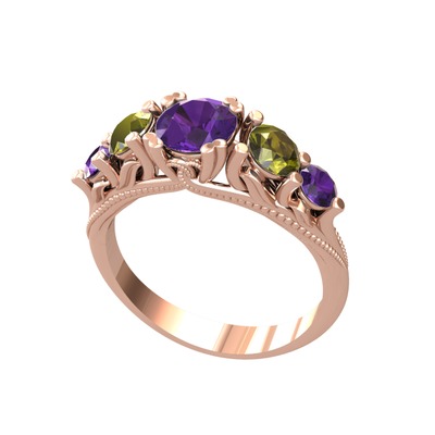 Ametist ve peridot 14 ayar rose altın yüzük