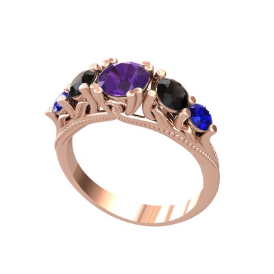 Ametist, siyah zirkon ve lab safir 18 ayar rose altın yüzük