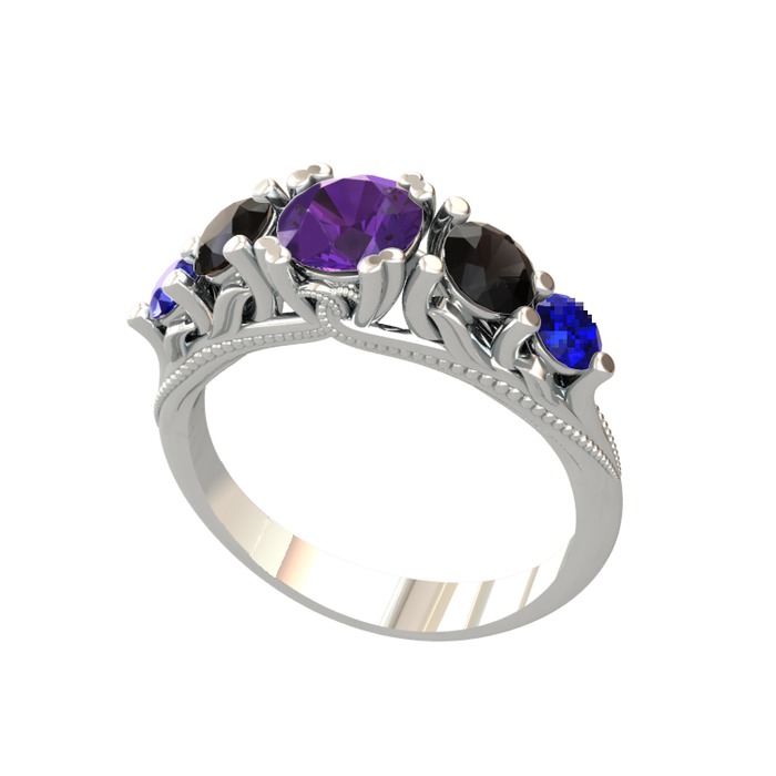 Ametist, siyah zirkon ve lab safir 925 ayar gümüş yüzük