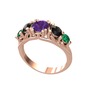 Ametist, siyah zirkon ve yeşil kuvars 8 ayar rose altın yüzük