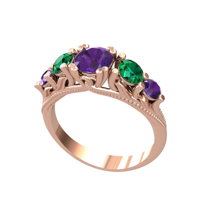 Ametist ve yeşil kuvars 14 ayar rose altın yüzük
