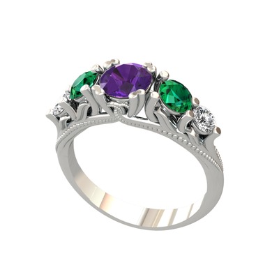 Ametist, yeşil kuvars ve pırlanta 18 ayar beyaz altın yüzük (0.36 karat)