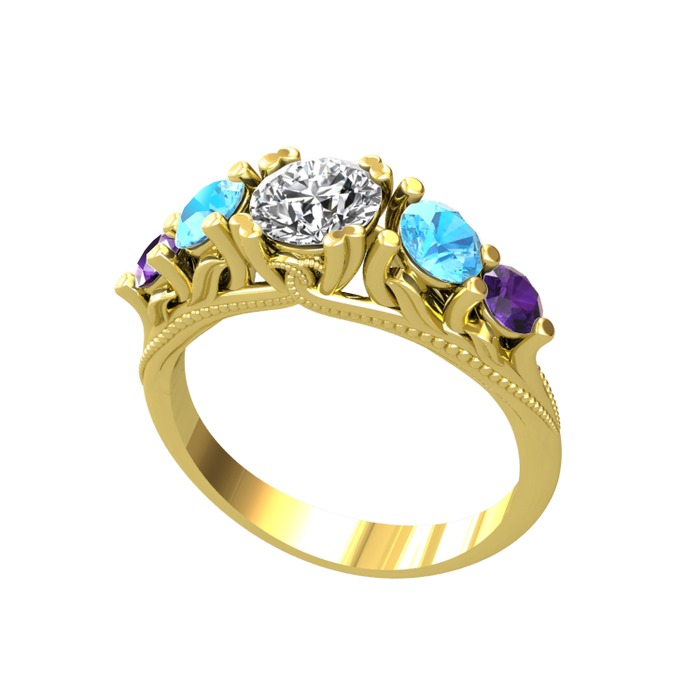Beyaz zirkon, akuamarin ve ametist 925 ayar altın kaplama gümüş yüzük
