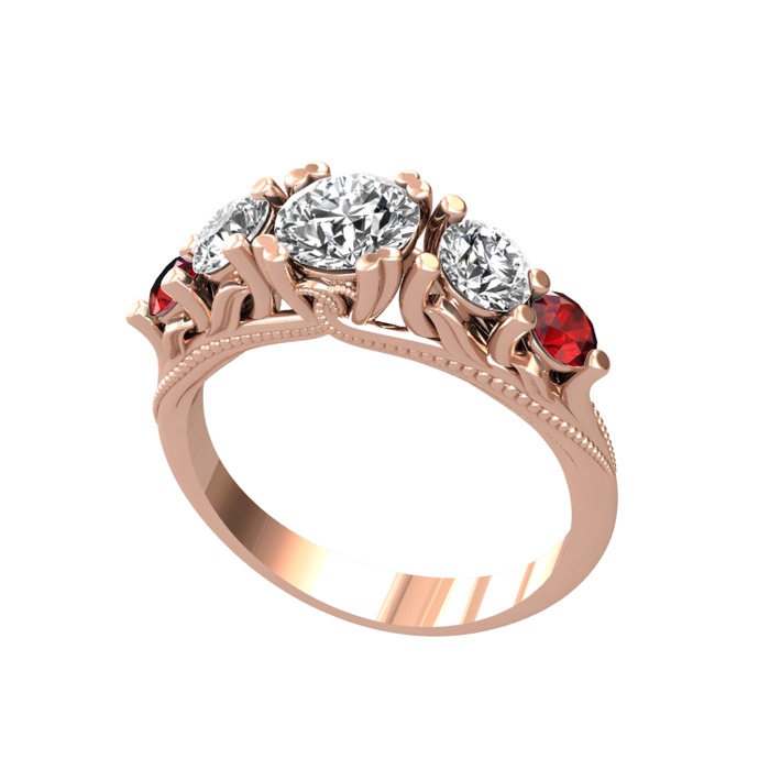 Beyaz zirkon ve garnet 8 ayar rose altın yüzük