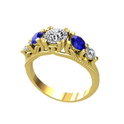 Beyaz zirkon, lab safir ve swarovski 18 ayar altın yüzük