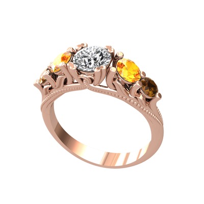 Beyaz zirkon, sitrin ve dumanlı kuvars 14 ayar rose altın yüzük