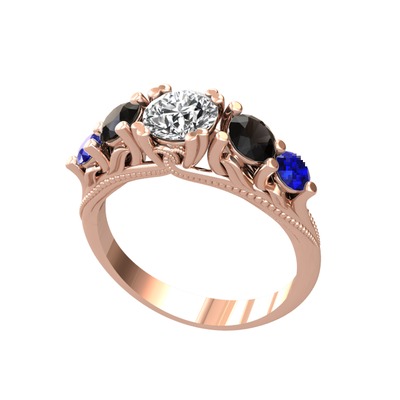 Beyaz zirkon, siyah zirkon ve lab safir 18 ayar rose altın yüzük