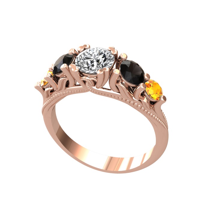 Beyaz zirkon, siyah zirkon ve sitrin 8 ayar rose altın yüzük