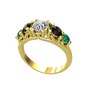 Beyaz zirkon, siyah zirkon ve yeşil kuvars 18 ayar altın yüzük