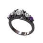 Beyaz zirkon, swarovski ve ametist 925 ayar siyah rodyum kaplama gümüş yüzük
