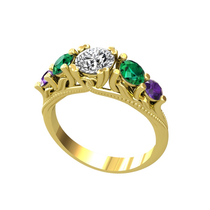 Beyaz zirkon, yeşil kuvars ve ametist 14 ayar altın yüzük