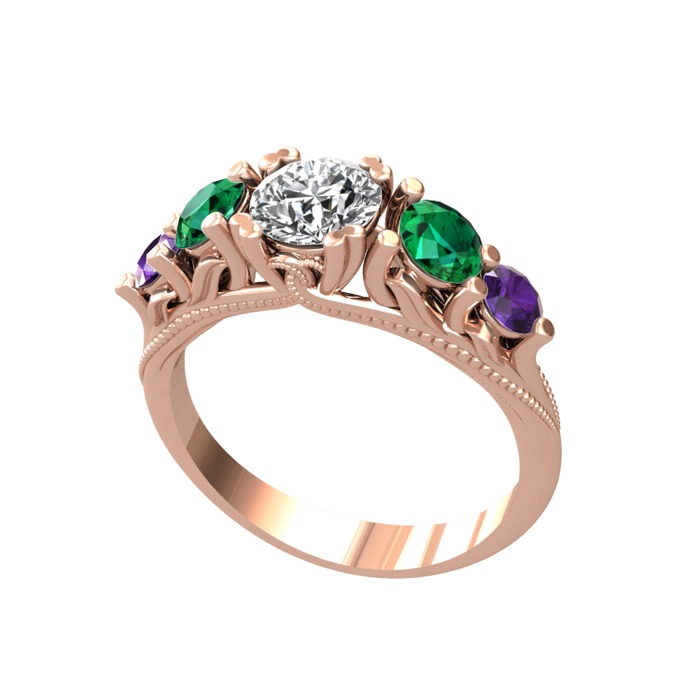 Beyaz zirkon, yeşil kuvars ve ametist 14 ayar rose altın yüzük