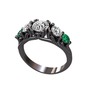 Beyaz zirkon ve yeşil kuvars 925 ayar siyah rodyum kaplama gümüş yüzük