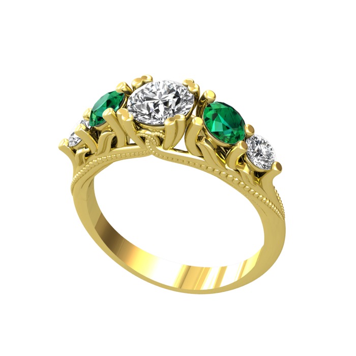 Beyaz zirkon, yeşil kuvars ve swarovski 18 ayar altın yüzük