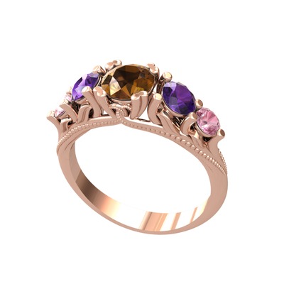 Dumanlı kuvars, ametist ve pembe kuvars 14 ayar rose altın yüzük