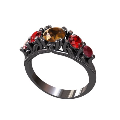 Dumanlı kuvars, garnet ve kök yakut 925 ayar siyah rodyum kaplama gümüş yüzük