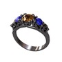 Dumanlı kuvars, lab safir ve siyah zirkon 925 ayar siyah rodyum kaplama gümüş yüzük