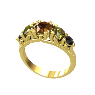 Dumanlı kuvars, peridot ve siyah zirkon 8 ayar altın yüzük