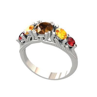 Dumanlı kuvars, sitrin ve garnet 925 ayar gümüş yüzük