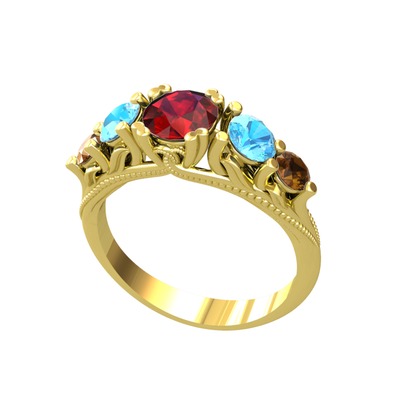 Garnet, akuamarin ve dumanlı kuvars 14 ayar altın yüzük