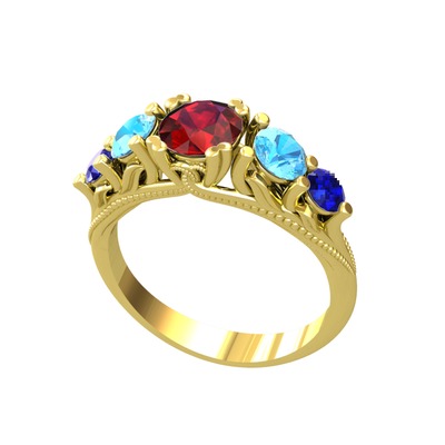 Garnet, akuamarin ve lab safir 18 ayar altın yüzük