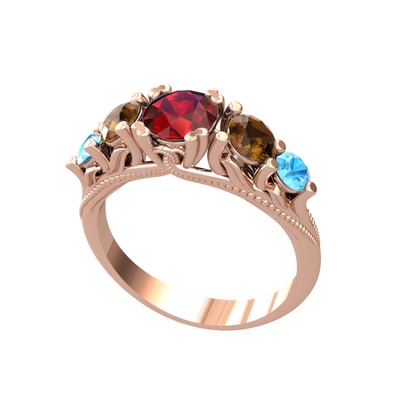 Garnet, dumanlı kuvars ve akuamarin 18 ayar rose altın yüzük