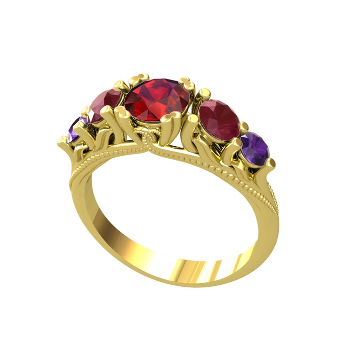 Garnet, kök yakut ve ametist 8 ayar altın yüzük