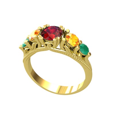 Garnet, sitrin ve kök zümrüt 925 ayar altın kaplama gümüş yüzük