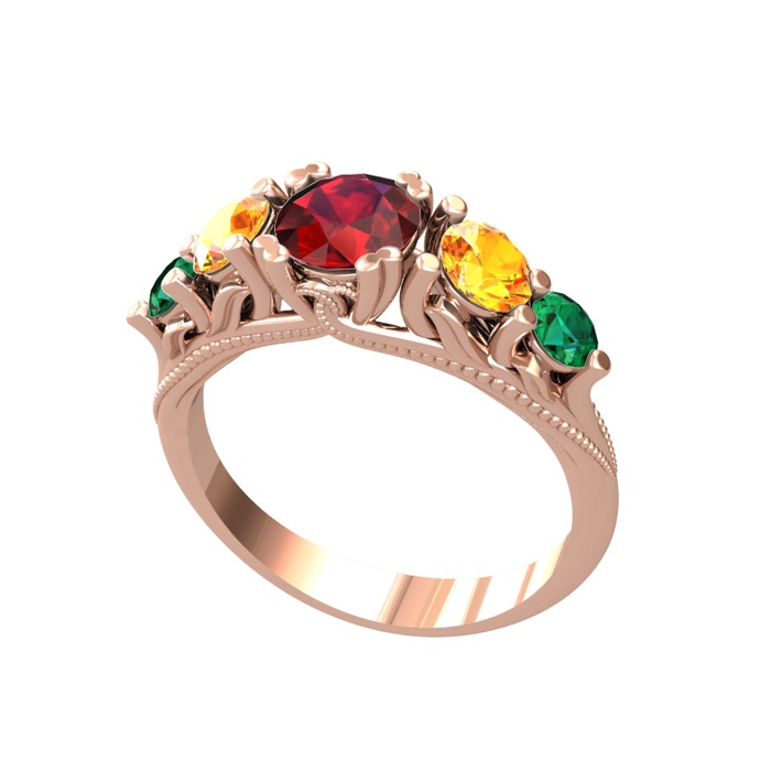 Garnet, sitrin ve yeşil kuvars 8 ayar rose altın yüzük