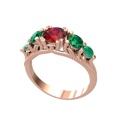 Garnet, yeşil kuvars ve kök zümrüt 14 ayar rose altın yüzük