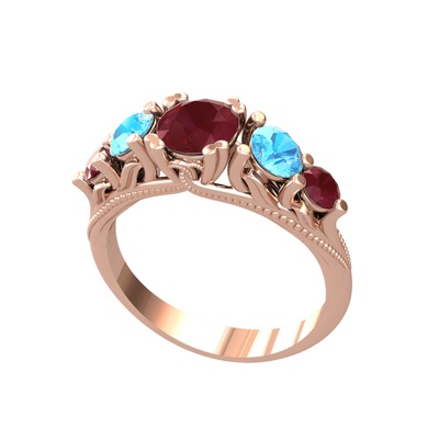 Kök yakut ve akuamarin 14 ayar rose altın yüzük