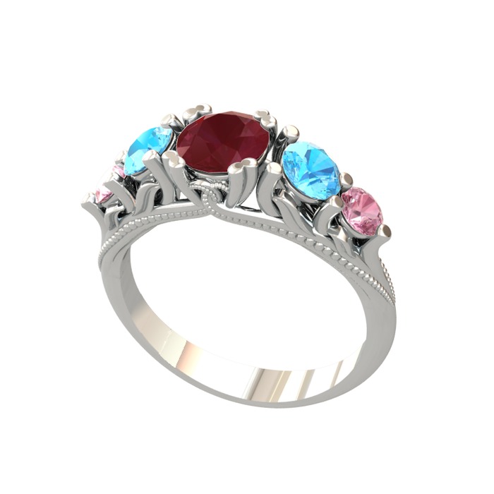 Kök yakut, akuamarin ve pembe kuvars 8 ayar beyaz altın yüzük