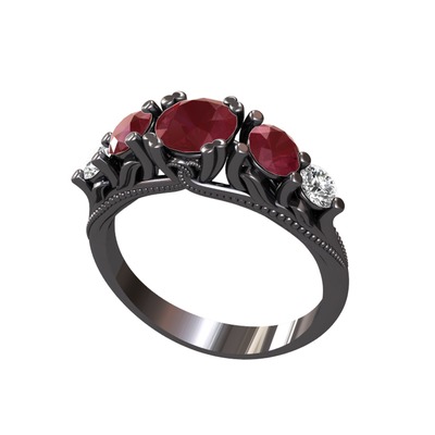 Kök yakut ve beyaz zirkon 925 ayar siyah rodyum kaplama gümüş yüzük