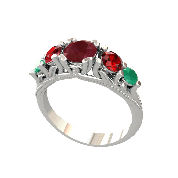 Kök yakut, garnet ve kök zümrüt 18 ayar beyaz altın yüzük