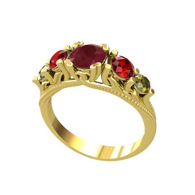 Kök yakut, garnet ve peridot 18 ayar altın yüzük