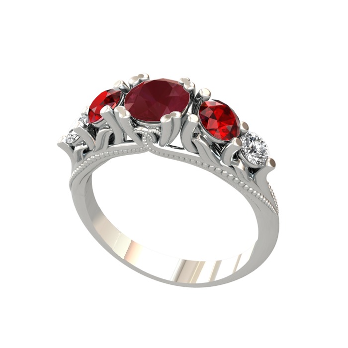 Kök yakut, garnet ve pırlanta 18 ayar beyaz altın yüzük (0.36 karat)