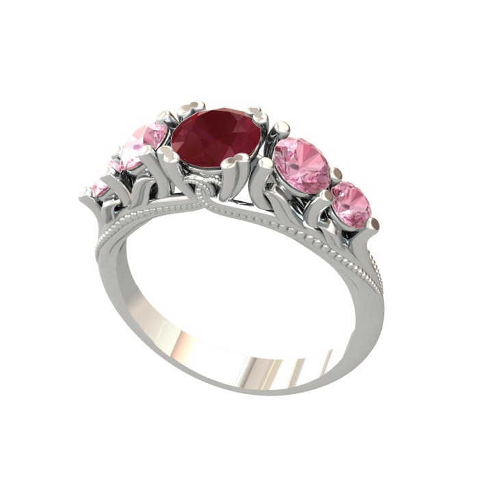Kök yakut ve pembe kuvars 14 ayar beyaz altın yüzük