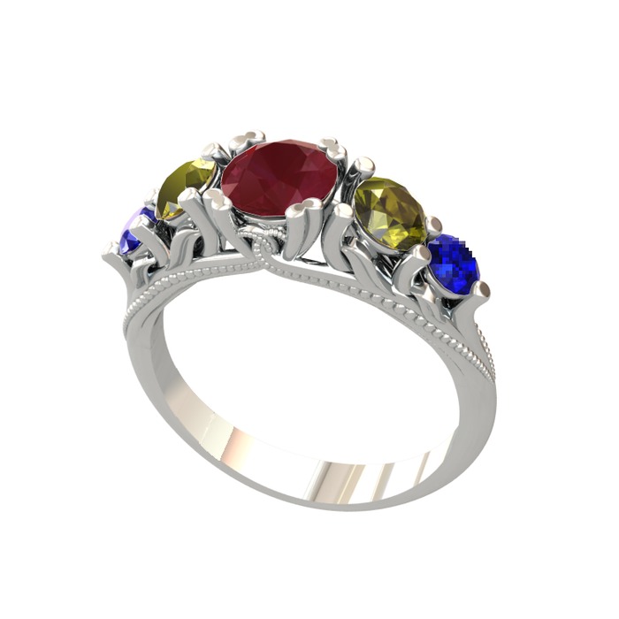 Kök yakut, peridot ve lab safir 8 ayar beyaz altın yüzük