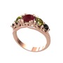 Kök yakut, peridot ve siyah zirkon 18 ayar rose altın yüzük