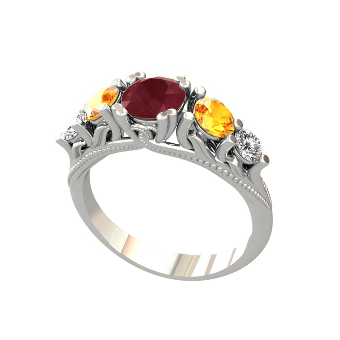 Kök yakut, sitrin ve pırlanta 18 ayar beyaz altın yüzük (0.36 karat)