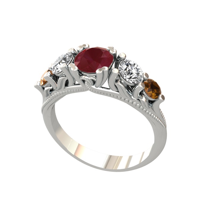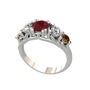 Kök yakut, swarovski ve dumanlı kuvars 14 ayar beyaz altın yüzük