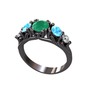 Kök zümrüt, akuamarin ve pırlanta 925 ayar siyah rodyum kaplama gümüş yüzük (0.36 karat)