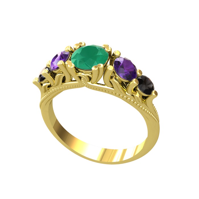 Kök zümrüt, ametist ve siyah zirkon 925 ayar altın kaplama gümüş yüzük
