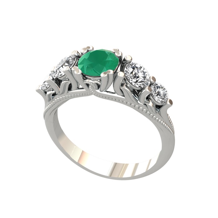 Kök zümrüt, beyaz zirkon ve pırlanta 18 ayar beyaz altın yüzük (0.36 karat)