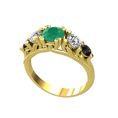 Kök zümrüt, beyaz zirkon ve siyah zirkon 14 ayar altın yüzük