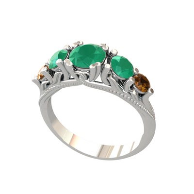 Kök zümrüt ve dumanlı kuvars 18 ayar beyaz altın yüzük